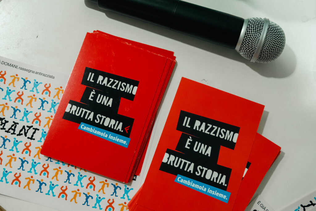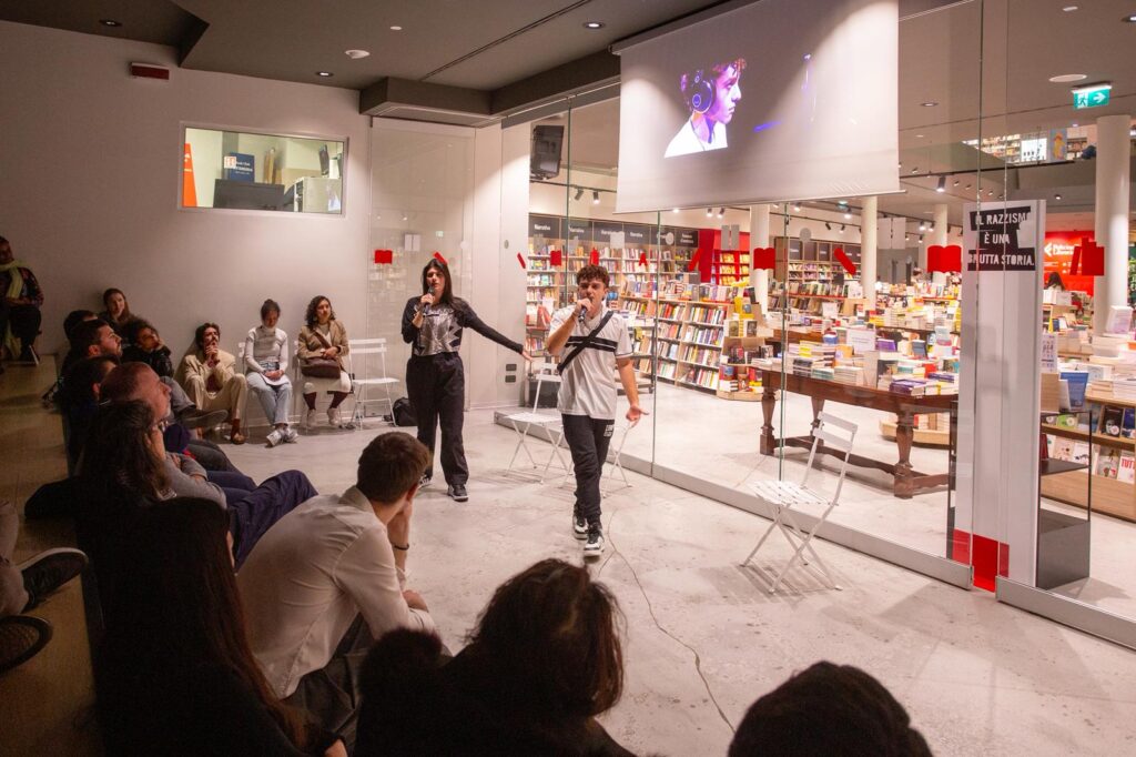 Come ogni anno, abbiamo affiancato alla rassegna antirazzista 2026 anche il Concorso artistico “È già domani” nato dalla collaborazione con Prima Effe – Feltrinelli per la scuola, che ha coinvolto oltre 50 classi di scuole di diverse regioni italiane, invitate a interpretare i temi dell’antirazzismo, della cittadinanza e delle identità plurali attraverso le forme espressive ritenute più efficaci – dalla scrittura al video, dalla musica alle arti visive. Con il desiderio che questi percorsi non restino solo esperienze isolate, ma diventino strumenti per leggere la realtà, metterla in discussione e prendere posizione dentro e fuori dalla scuola.