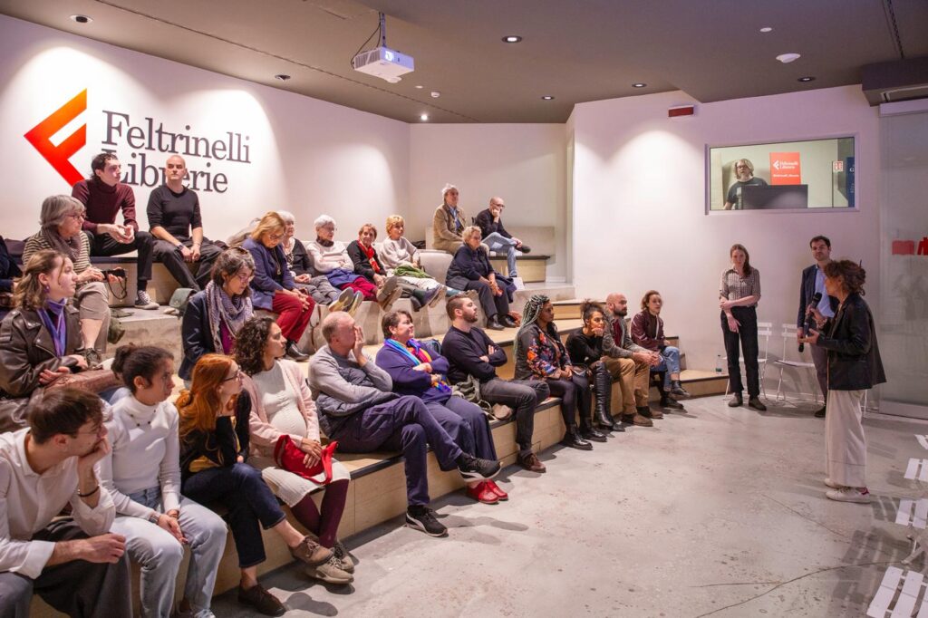 La settimana è proseguita martedì 17 marzo con l’appuntamento napoletano, con la proiezione del film musicale “Un milione di italiani (non sono italiani)” di Maurizio Braucci e un momento di riflessione sul futuro di tutte e tutti noi in Libreria Feltrinelli.