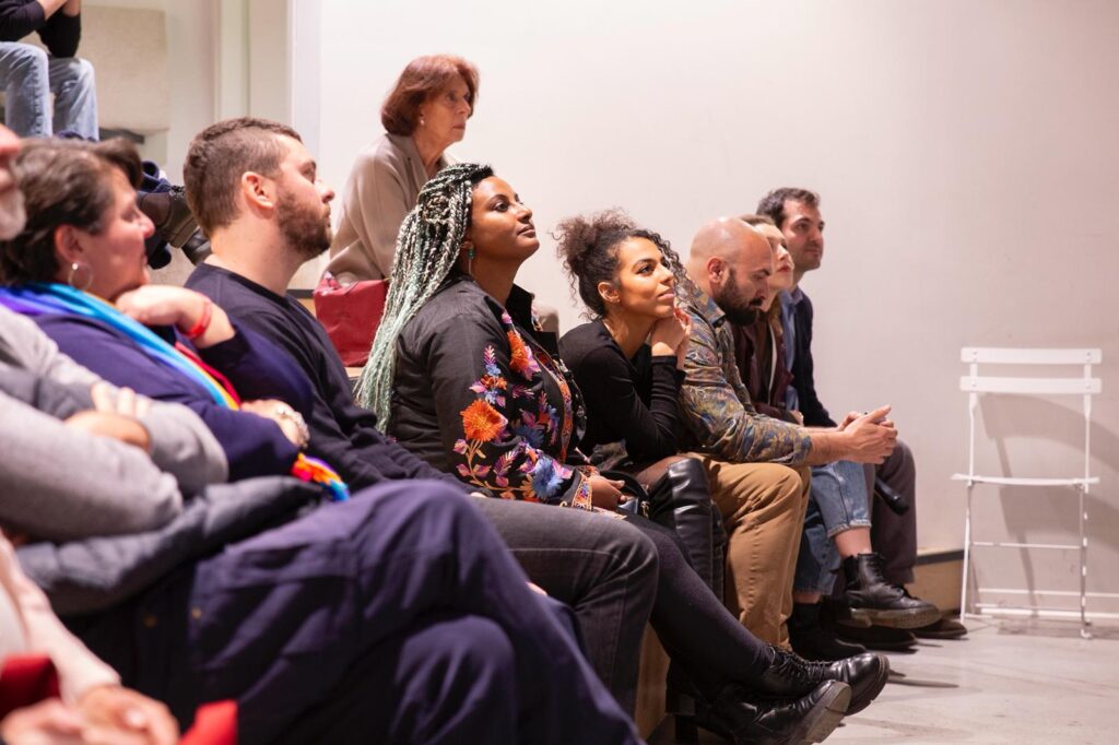 L’appuntamento serale è stato aperto da Iftar Street “Datteri e storie antirazziste” curato da Sumaya Abdel Qader e hanno partecipato al dialogo anche Yohamin Teshome dell’associazione La Mya Parte e Iman Scriba, che ha presentato in anteprima le immagini del nuovo progetto “IA – Idoneità Abitativa” realizzato con Mattia Zoppellaro: