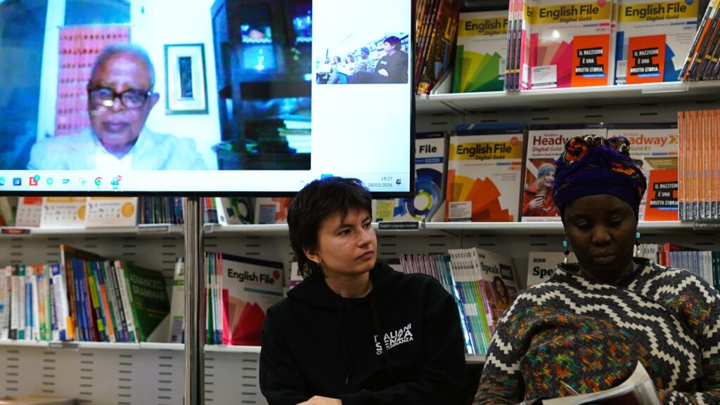 Poi, venerdì 20 marzo, “Il futuro passa dalla memoria” – riflessioni pubbliche tra storia e poesia sul passato decoloniale e DJset con Abya Yala Futurism. Iniziato al Giardino Zerai Deres con Yodit Estifanos (Associazione Tezeta), Alessandro Triulzi (storico) e Leonardo De Franceschi (Disarchivio) nell’ambito delle attività della Rete Yekatit12-19febbraio, e il reading poetico con Yonas Aregay e Lula Teclehaimanot. Si è proseguito di pomeriggio in Libreria Feltrinelli via Orlando con il Panel Decolonialità e Cittadinanza curato da Italiani Senza Cittadinanza. In collegamento da Crotone anche il ricercatore Stifanos Asfaha che ha raccontato la storia del traduttore etiope Zerai Deres (1915-1945).