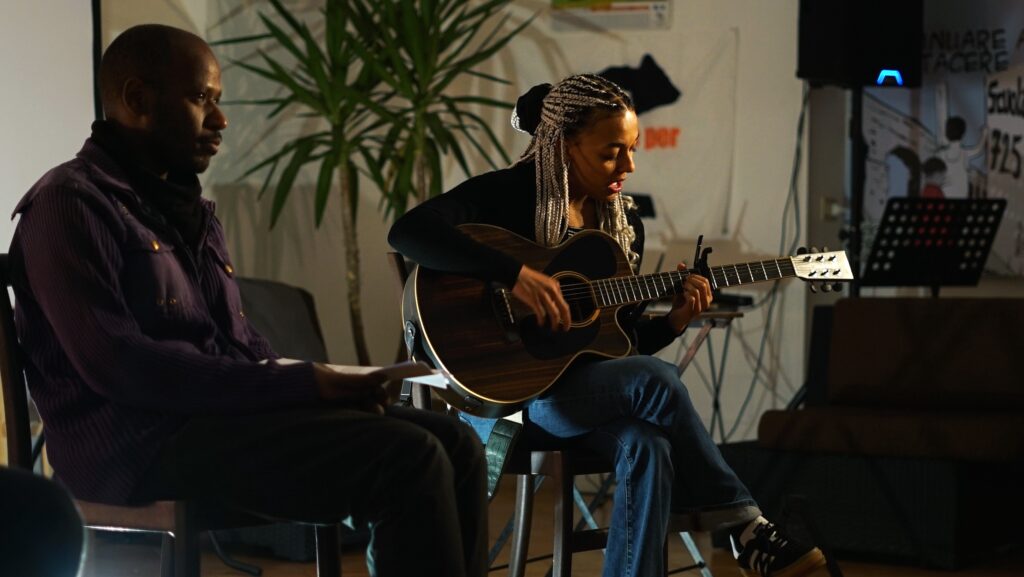 La serata è poi continuata con “Identità incerte”, open mic e stand up comedy antirazzista con Rampa Prenestina, compagnia e associazione teatrale di attori e attivisti italo-rom, insieme a Xhuliano Dule, Yassin Kefi e altri artisti, in collaborazione con Italiani Senza Cittadinanza.