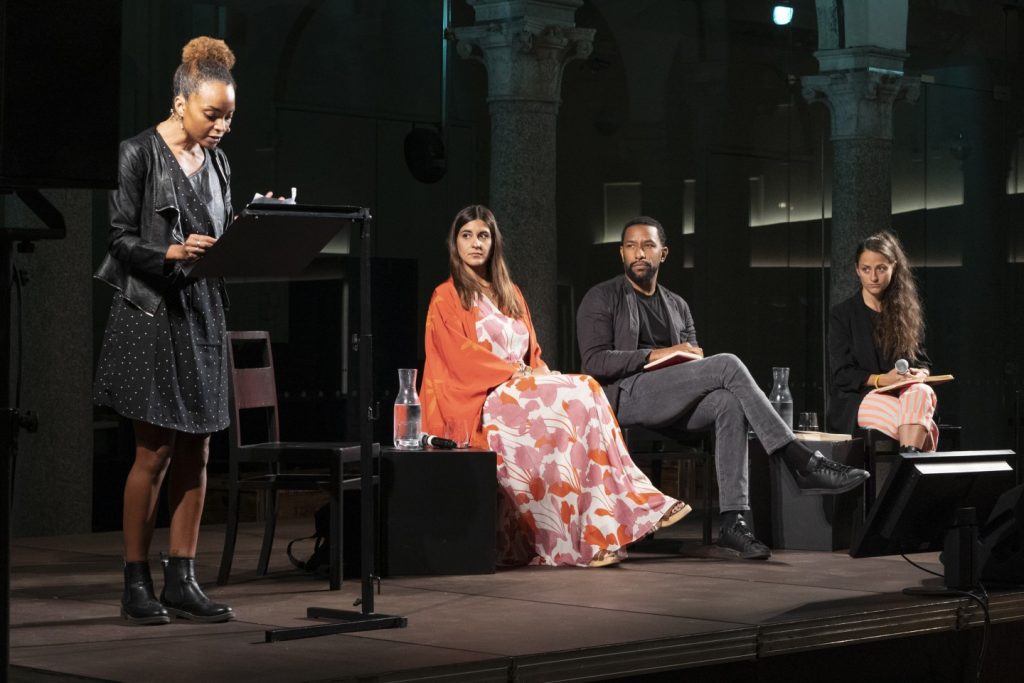 Dalle riflessioni di Scego, Sanneh, Hakuzwimana e Kan su come decolonizzare le istituzioni culturali, “decanonizzare” l’immaginario e lavorare sui pubblici, alla potenza di Rosanna Sparapano, attrice afrodiscendente diplomata alla scuola del Piccolo che ha dato voce e corpo ai testi di Laeticia Ouedraogo e Esperance Hakuzwimana  e Djarah Kan, e di Tesfamariam, Mbaye e Houbabi nel reading IT.ALIENE
